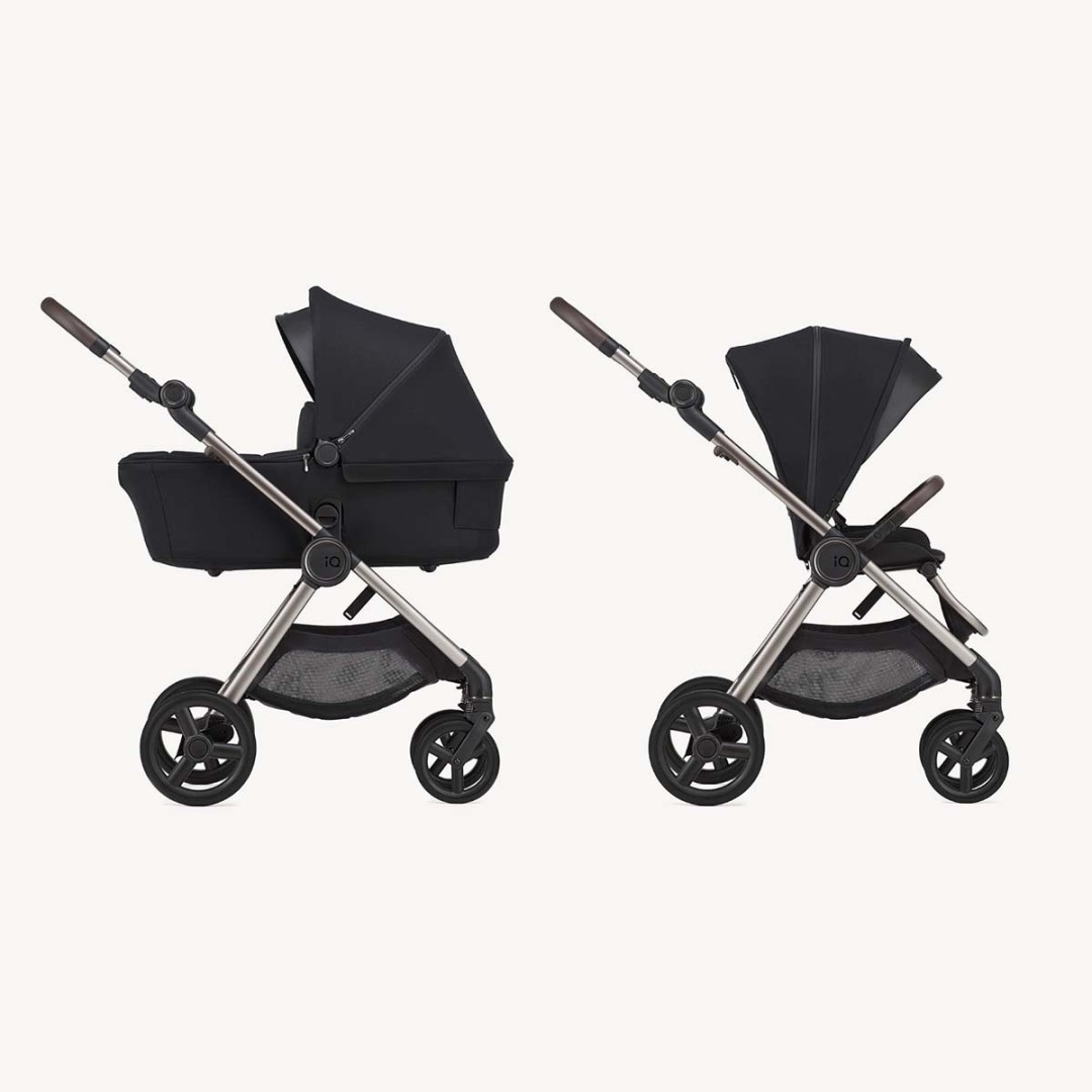 IQ is a carrycot, stroller and lightweight stroller all in one. Lightweight in every configuration, it allows you to change, match and transform to suit your every need.