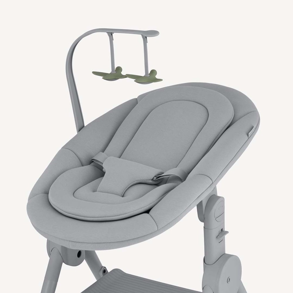 Ozy is an all-in-one set featuring a newborn seat, high chair, and activity tower, designed to seamlessly blend into a family’s daily life and enjoying simple moments together.